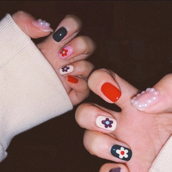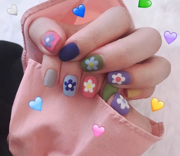 这种在ins上总能看见的带有小花朵图案的亮色美甲被叫做“泫雅风”美甲,就是泫雅做过的可爱美甲以及粉丝们延伸出来的同类型美甲,风格特别怪趣少女。