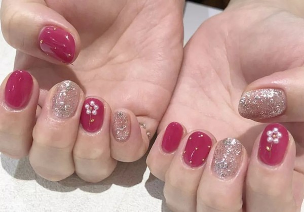 如果你有其他喜欢的元素,也能毫无违和感地结合起来,把大拇指上的珍珠改成爱心,选择透明色打底,同样俏皮可爱。