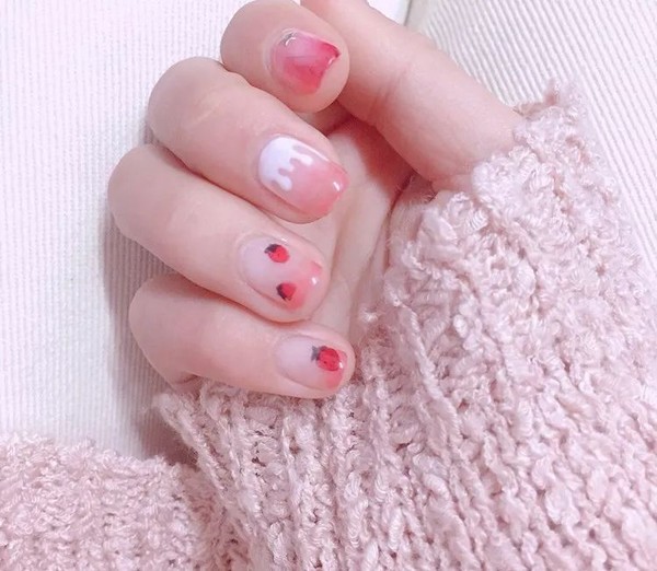 每个指甲都做了渐变,再配上流动的牛奶,和所有的浅色衣服搭配都没问题~