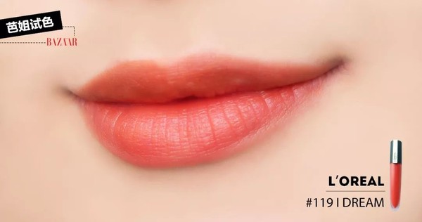与前两支滋润妆效不同,欧莱雅小钢笔119是水润轻薄的唇釉质地,雾面妆效