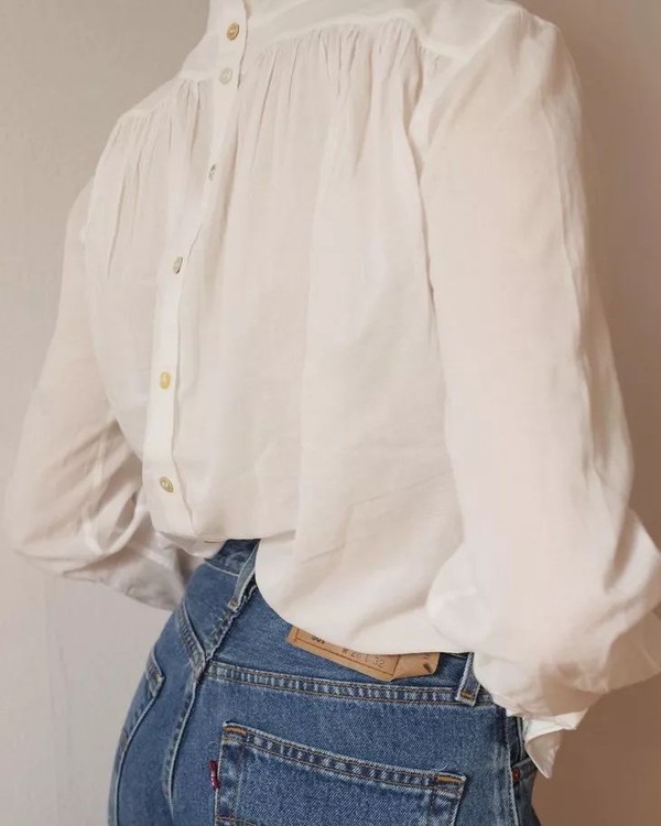 它家衬衫的特点在于轻盈薄透,而且细节设计十分到位,能将女性化的一面衬托得更加柔美。