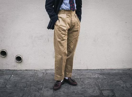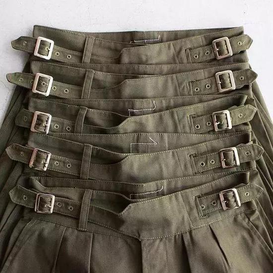 其实传统的Gurkha裤并没有腰扣,而是在左侧腰带的内侧有个扣环,将腰带以调整松紧的方式拉至中间,现代的设计则会简化这部分。也有一些Gurkha裤会在两侧做双腰扣设计。(gq.com.tw)