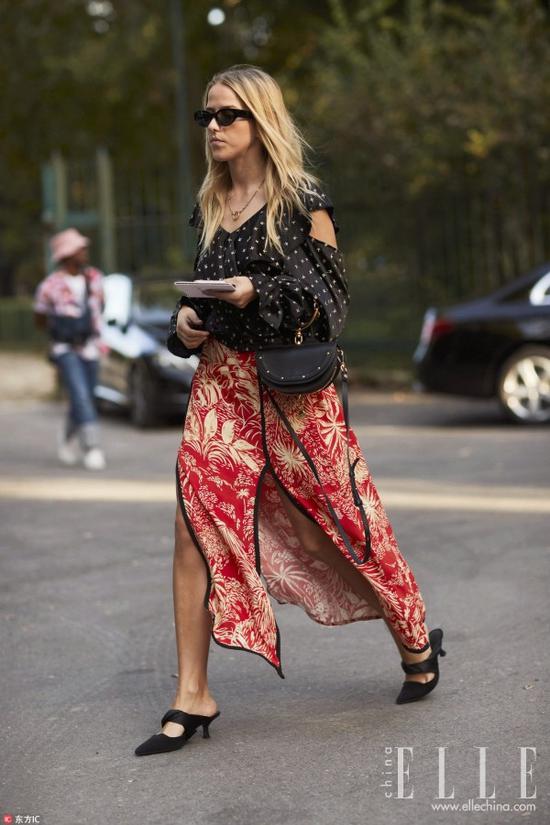 先从今年春夏季的T台来看,2018年的开衩裙更多注重在裙子侧边的开衩设计,而且裙子整体更加修身。另外,裙子的材质最好是飘逸轻盈的。这样一来,开衩裙的修身效果会更出色: