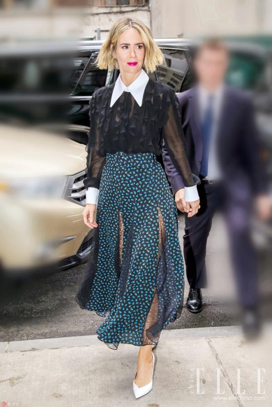想在上班时间穿开衩裙,那么衬衣的搭配一定是首选。这样既不会太“闲散”,也可以让上班的造型有不一样的感觉。