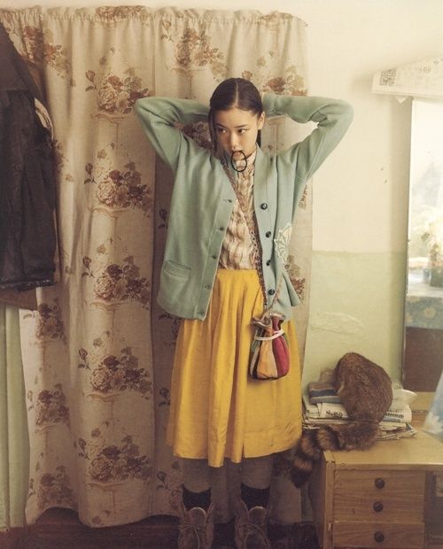 在日本,森女范儿穿搭十分常见,另一个代表人物宮崎葵也是自带仙气的森女风女星。相比苍井优,宫崎葵的***在颜色方面更偏向低饱和色系,也相对更加日常。
